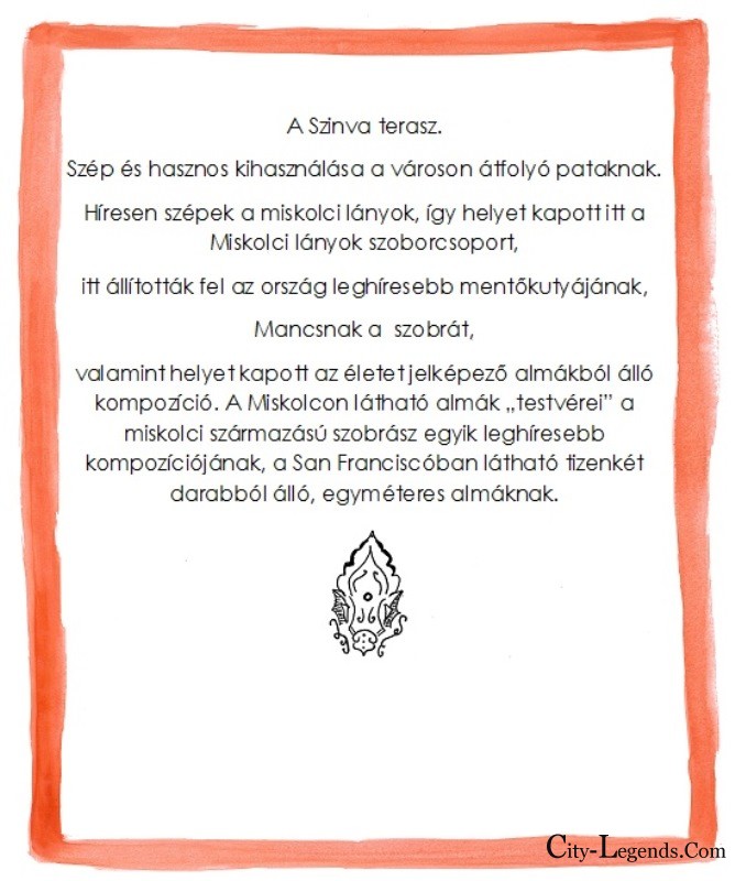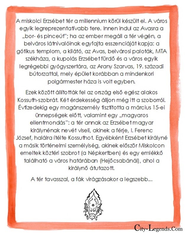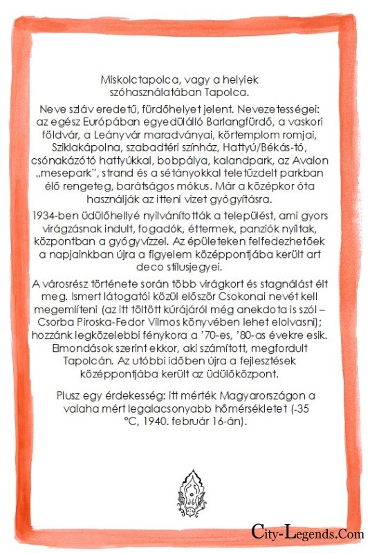 Mint írtam a beköszöntőben, Miskolc városa is életem része lett. Kelet, mint Debrecen, egy kultúrkör, számos kapocs, de mellette kicsit hepe-hupásabb. A városban, miután megismertem a lebilincselő helyi mondákat, a városi lokálpatrióták oldalára álltam. Szeretném képviselni és támogatni újra-felfedezését, a különleges hangulatú Miskolc mindenki számára érdekes történeteinek bemutatását. Illusztrálom legendáit, hogy minél több emberhez eljussanak üzeneteikkel együtt, akár képeslap, akár apró ajándéktárgy formájában. Vagy csak így, online. A képek bemutatására eddig több kiállításon került sor: Miskolcon, Budapesten, Debrecenben, Gyulán. A galéria folyamatosan frissül.